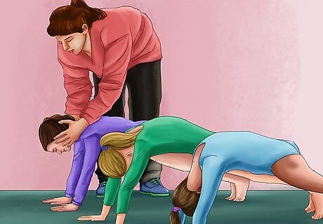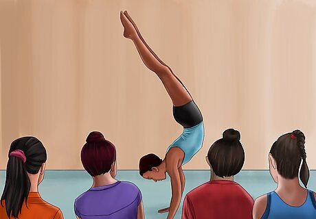 Learn about gymnastics. The first step in becoming a gymnastics instructor is to learn about gymnastics. The same way you can't be a soccer/football (European) ref if you don't know the rules, you can't be a gymnastics coach if you don't know the rules and ropes of gymnastics. Learn about: The apparatuses. Learn how to set the bars, how to set the vault, how to set a springboard, how to set a beam, and the rules about matting underneath. How to spot. You may think there is only one way to spot, but spotting is different in almost every event. The rules of competition. What's the white line of floor for? How far can you start back on the vault runway? Learn the complicated rules of gymnastics. The way judges judge. Learn what the can take deductions off of, what they can't and what you can do to improve How to do a handstand. The most important skill in gymnastics, you can't teach kids how to do a handstand if you can't! You don't need to know how to do all the skills you teach, but you should know how to do a handstand.