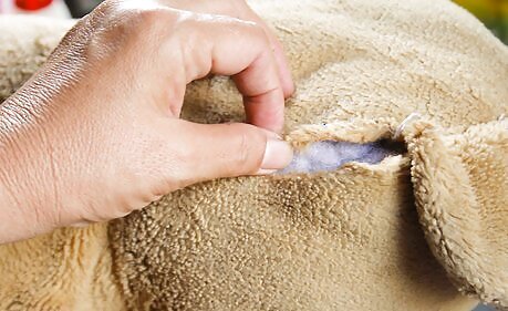 Note the overall condition of the teddy bear. Much-loved bears tend to get holes, then patches and stitches. This doesn't mean they're not worth collecting but it does mean that you should be alert to the possibility that the bear has weaknesses and if it's a vintage collectible, this can affect the value. Look for split seams, tears or rips and poor repair work. These can reduce the value of the teddy bear. Check under clothing on dressed bears, to see what it may be concealing by way of replaced bear parts or repairs. Is it faded? Over time we all fade, bears too. Check the color under joints or areas under clothing and compare to the exposed parts of the bear to see how much fading has occurred. Are the joints working in the bear (if it is jointed)? Limbs may have been stitched back on; check closely. If the teddy bear has a voice-box or squeaker, does it work? More than likely it won't in an old bear, as that's just what happens over time. Beware poor modern replacements. Not all teddy bears are fixable. If the material is falling apart on the teddy bear, it's on its last legs and either avoid it or offer to take it out of pity, for free.