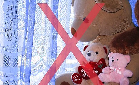 Ensure that the teddy bears are properly looked after. Teddy bear collections are more valuable when the bears forming the collection are kept in as good a condition as possible, given age, make and rarity. Things to bear in mind include: Only surface clean teddy bears, according to the manufacturer's instructions. If a teddy bear needs washing, read the care label first and follow its instructions. Only bears post the 1970s will have such labels, if at all. If the teddy bear is valuable, old or fragile (as opposed to modern, machine-washable teddy bears) and you cannot find suitable washing instructions, seek advice from a reputable toy store or a fabric conservator first. Keep the teddy bears in an environment that prevents their decay. Things that can harm a teddy bear collection include dampness, high humidity, mildew or mold, heat, sunlight, insects, etc. Keep out of the reach of children and pets. Both will see teddy bears as playthings, which they are, but not once they're part of your collection! Display them so as to protect them. See the display section below for advice.