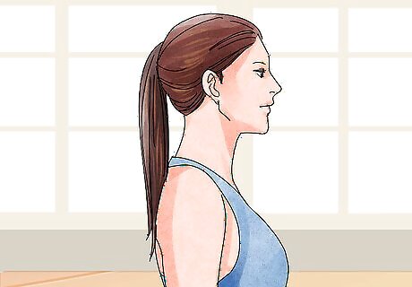 Wear minimal makeup. Unless your competition says otherwise, try to only wear the essentials. You want to show off your natural beauty. Apply some concealer and powder to even out your skin tone and highlight the apples of your cheeks with a natural-looking blush. If your eyebrows are too light, darken them a little bit with eyebrow makeup and shape them with wax or hairspray. Last, apply some mascara. If you have naturally dark hair, use black mascara. Otherwise, use brown mascara. Don’t wear colorful nail polish. Instead, clean your nails and apply a coat of clear nail polish. Pull your hair back from your face in a tight ponytail to show off your features.