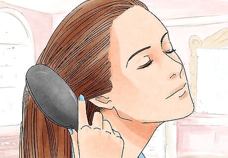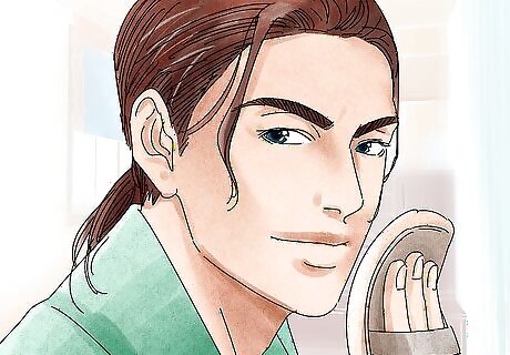 Apply makeup. Most male models wear natural looking makeup that highlights their skin and eyebrows. Choose a foundation that matches your skin tone and apply a thin layer on your face with a foundation brush. Next, brush a thin layer of translucent powder over your face to hold the foundation in place. Lastly, groom your eyebrows. Pluck any stray hairs and darken your eyebrows with brown eyeshadow if they’re too light. Apply a moisturizer thirty minutes before you put on makeup. This will make your skin look full and healthy. Make sure to blend the foundation really well around your nose and mouth. These areas are easy to overlook.