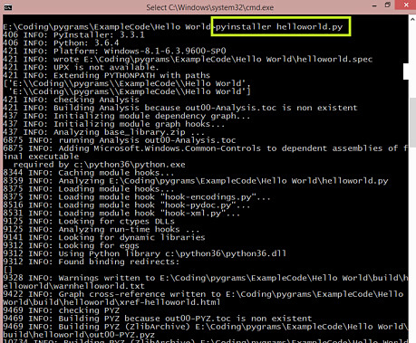 Type this command to compile your script. Wait for the command to finish. pyInstaller script_name.py