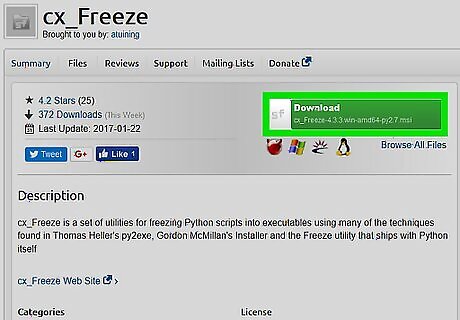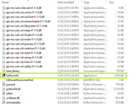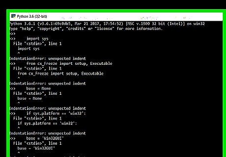 Enter the following code into your new setup.py file. (As always in Python, correct indentation is important, and unfortunately is not shown here due to formatting difficulties.): import sys from cx_Freeze import setup, Executable base = None if sys.platform == 'win32': base = 'Win32GUI' executables = [ Executable(Python program name, base=base) ] setup(name=executable_name, version='version', description='desc', executables=executables )