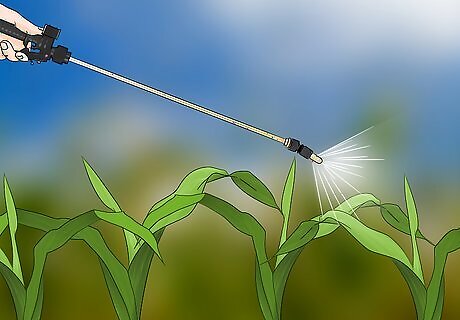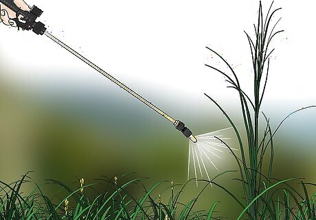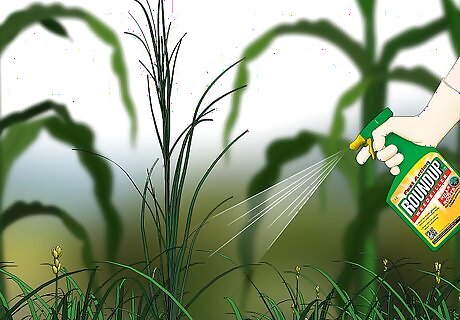 Spot spray infested areas. Johnson grass doesn’t grow evenly, so if you notice any growing, consider spot spraying your crops, rather than treating all of them. Mix the herbicides mentioned above with water into a 1 to 2 percent mixture (1 to 2 percent of the herbicide in the solution) and spray specific spots.