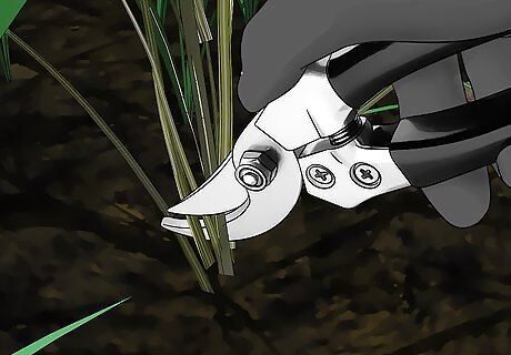 Cut down the plants once they turn brown. How long it takes will depend on the brand of herbicide you use, so make sure you check the label. Once the plants have gone brown, cut them down at the base of the plant with pruning shears.
