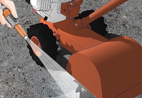 Clean equipment used on Johnson grass to prevent spreading. If you’re using your equipment to break up Johnson grass but you don’t clean your equipment after, it can actually spread the grass. Make sure any blades are clean, as well as the bottom of any machines. You can clean them easily with soap and water.