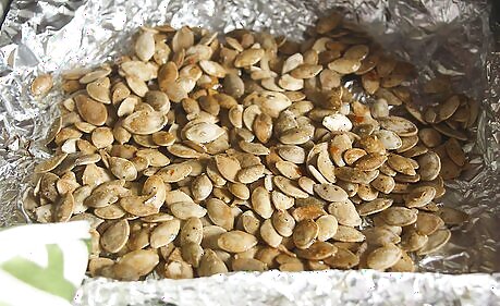 Sprinkle the seeds with salt and bake for 20-30 minutes, or until golden brown. Stir the seeds after about 10 minutes so that they cook evenly.