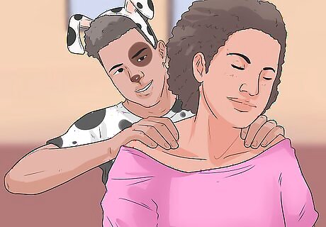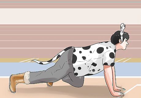 Communicate like a dog. Dogs can’t tell you what they want and what they are feeling, so they use a lot of body language to communicate with people. Study a dog’s body language and mimic what dogs do to communicate. When someone is speaking to you, tilt your head to one side. Wag your tail when you’re happy. Dodge out of the way when you are mad at someone who is about to touch you. Whine for attention.