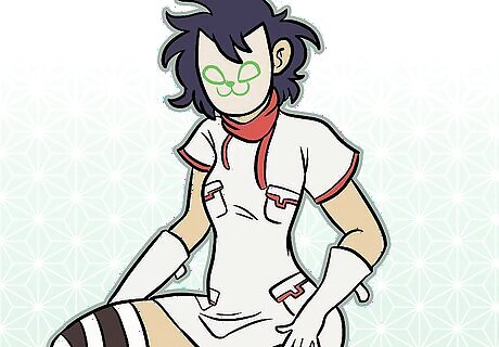 Resemble Phase 2 Noodle. Phase 2 Noodle is 15 years old and rather tall. Her bangs now cover her eyes. One of the easiest looks is from DARE, in which she has white capris, white sneakers and a white shirt with a basketball on it. Noodle also puts on a football helmet and plays a small keyboard near the end of the video. If you need an outfit for a colder day, try the outfit she wears in Dirty Harry- an army cap, green pants, a beige shirt and a yellow handkerchief around her neck. Or you could go with her El Manana outfit- a black and white striped 3/4 length shirt, black short shorts, and black knee-high boots.