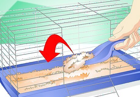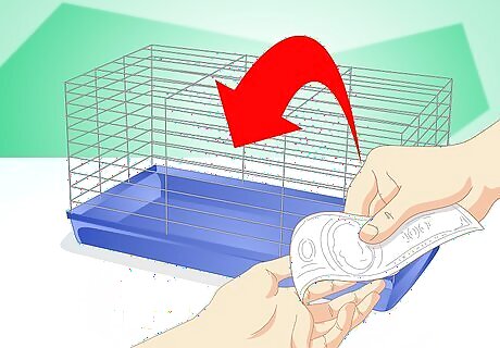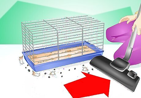 Sweep and clean the habitat area. If your hamster lives in a wire cage, she may kick out bits of bedding or food into the area around it. Vacuum or sweep up any areas around her cage that are soiled and disinfect them if necessary. Disinfect any areas of the floor or walls on which your hamster sprayed with a disinfectant cleaner or mixture of vinegar and water.