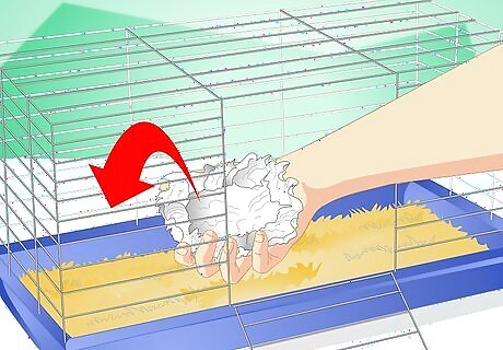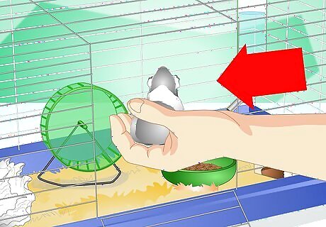 Return your hamster to his cleaned cage. Once you’ve cleaned your hamster’s home, reintroduce to him to it. Give him a treat for behaving while you cleaned.