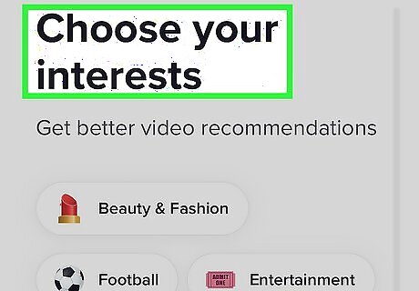 Follow the on-screen instructions to get started. Depending on how you signed up, you'll have some different options. Have fun on TikTok! After signing in, the app will ask you your interests before feeding you videos on your For You page. As you swipe through TikToks and like and interact with videos, the algorithm will learn more about you and show you more relevant videos. If you want to "customize" your For You page with the help of the algorithm quickly, search for some of your interests and like lots of the videos you find. To recover your TikTok account when you have forgotten the password, go to log in. Select, use phone, email, or username. Then choose email or username, and tap forgot password. Choose to reset with a phone number or email address. It will send you a 6-digit code to either your phone or email. Then select a new password.