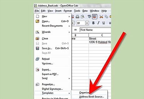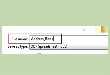 Name the columns. Change A1 to F1 to the following: First NameCreate an Address Book Using Open Office Calc Step 6Bullet1.jpg Last NameCreate an Address Book Using Open Office Calc Step 6Bullet2.jpg StreetCreate an Address Book Using Open Office Calc Step 6Bullet3.jpg CityCreate an Address Book Using Open Office Calc Step 6Bullet4.jpg StateCreate an Address Book Using Open Office Calc Step 6Bullet5.jpg Zip CodeCreate an Address Book Using Open Office Calc Step 6Bullet6.jpg