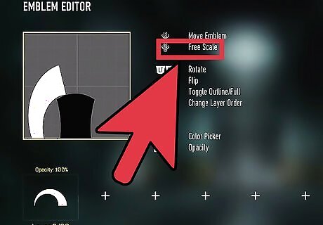 Press down on RS to switch to free-scale controls. Use RS in inverted controls to distort the shape of the emblem to fit whatever you need. Press down on RS to switch back to fixed-scale controls when you are done.