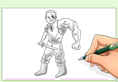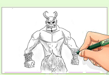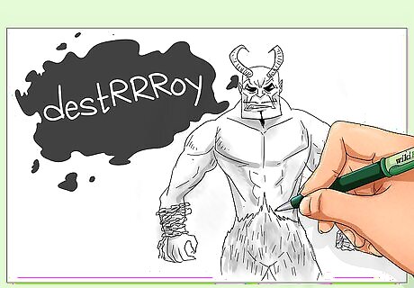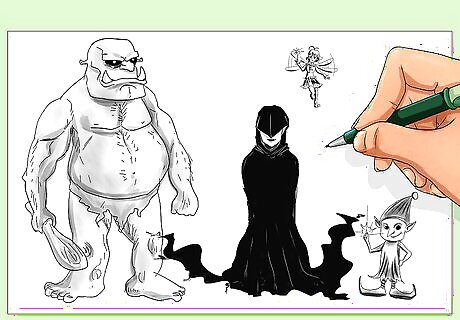 Create a demon character to give your fantasy a scary element. Demons in fantasy worlds tend to have human elements to give them a scary, realistic feel. Consider giving your demon eyes, hands, feet, and ears. Enlarge, shrink, or change these human attributes to make your demon unique. Demons tend to be dark in colour to give them an ominous feeling.