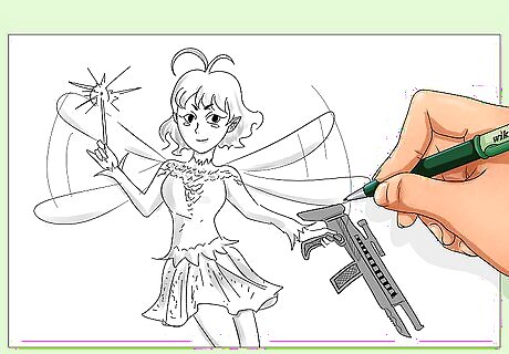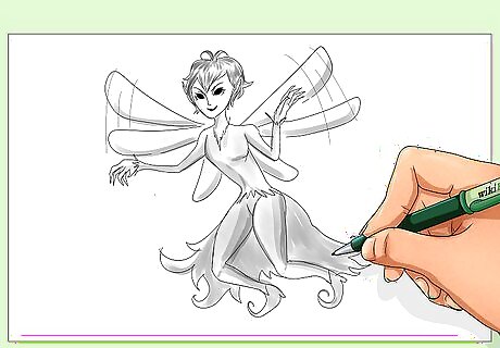 Opt for a fairy if you want a delicate character. Fairies tend to be glamorous, gentle, nimble, lucky, and often have healing powers. These small characters usually have wings, a wand, sparkly dresses, and pretty complexions. Use your own imagination to dream up what kind of fairy you would like to include in your fantasy land. Be careful not to make descriptions of fantastical characters too generic. Many readers will already know what a fairy looks like. Try to explain what makes your version of a fairy unique. For example, describe the wand and the colour of the dress.