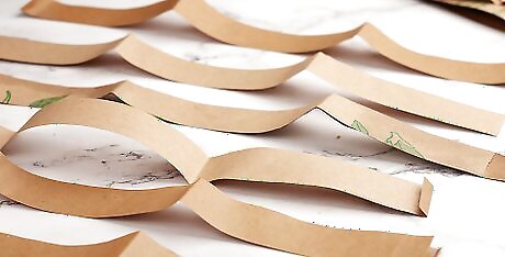 Tear your paper bags into long strips. If you’re using brown paper lunch bags, tear or cut strips down the length of the bag, cutting off the bottoms so that you have one, smooth strip. If you’re using larger paper bags, make sure to cut your strips so that they are all about 8-10 inches.