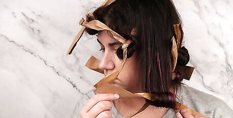 Tie the loose ends of paper. Once you’ve rolled as much hair as you want to curl, you need to secure the paper strip. Do this by tying the two loose ends together. Make sure you create a secure knot that will hold your hair firmly in place while it dries. If you’re unable to form a knot with the two loose ends of paper, you may need to work with longer strips.