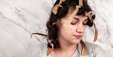 Let your hair dry. You can create your paper bag curls before you go to sleep, and let them dry overnight. If you’re going to be lounging around the house, you can also certainly put your curlers in in the morning and let them dry throughout the day. The most important thing is that your hair is completely dry before removing the strips. If you’re in a rush, you can run a blow dryer over your curlers. Keep your blow dryer on low or medium heat, and make sure to apply a heat protectant to your hair if you plan to do this.