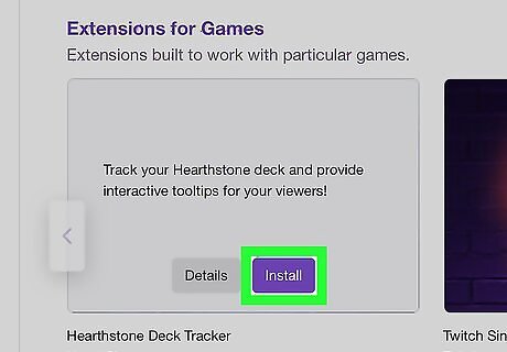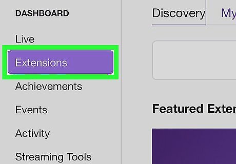 Add extensions to your stream. Extensions overlay your stream and provide another layer of interaction with your viewers. For example, if you mostly stream World of Warcraft, you can include an extension that displays your World of Warcraft stats when the viewer interacts with the extension icon. To activate and use your extension, you will need to tap Configure and follow the extension’s instructions to continue.