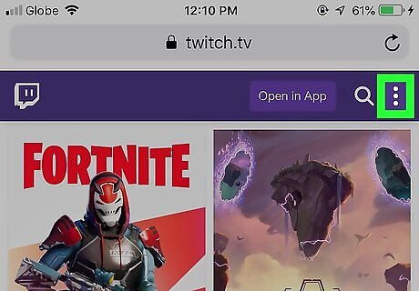 Tap ⋮. This menu icon is white on a purple background that you’ll see this in the upper right corner of the browser window. There are two ways you can request the desktop mode, through Twitch or Safari. If you want to use Safari to request the desktop mode, tap the share button, which is the arrow pointing up out of a square, then tap Request Desktop Site.