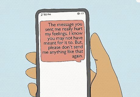 Talk to the sender in private. If the comment is from someone you know, you can deal with it by telling the person how you feel. The sender may not realize that their comment was mean or that it hurt your feelings. Talking to them in private may convince them to stop. Tell them the comment bothered you. Try saying, “The message you sent me really hurt my feelings. I know you may not have meant for it to. But, please don’t send me anything like that again.” Explain that the comments could lead to false rumors being spread or unneeded drama between friends. For example, you might say, “What you posted could be misinterpreted in a bad way.” If the comments are on social media and they are about something you would rather not discuss on the internet, then explain that to the person. You could say, “I really don’t want everyone to know about that. Next time, please just call me or send me a private message.”