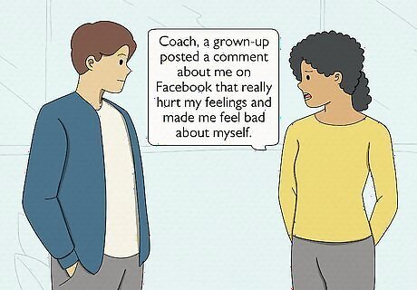Talk to an adult you trust. If you are a child, pre-teen, or teenager and the mean comment is from an adult, you should tell another adult. You should also talk to an adult if the comment bothers you so bad that you can’t sleep, or your eating habits change, or you feel bad about yourself for a while. Immediately tell an adult like your parent, teacher, coach, or religious leader if another adult posts something mean, untrue, or scary about you or to you. For example, you could tell your coach, “Coach, a grown-up posted a comment about me on Facebook that really hurt my feelings and made me feel bad about myself.” You could talk to your dad by saying, “A while ago someone posted a comment about me that was mean. I tried to ignore it, but it still really bothers me.” Adults can help you with things like figuring out who the person is (if you don’t know), how to make sure they don’t do it again, and how to help you with how you feel about it.