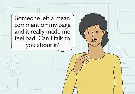 Express how you feel. Mean comments can affect you when you read them, as well as for a while after that. You may feel betrayed, angry, depressed, confused, or sad. Don’t ignore how you are feeling. The best way to deal with the way the comments make you feel is to acknowledge it. Talk to someone close to you about how the comments make you feel and why they make you feel this way. ”You might say, “Someone left a mean comment on my page and it really made me feel bad. Can I talk to you about it?” Write about how you feel in your journal. Write down each feeling and why you think the comment made you feel this way. Write about how you can feel better. Talk to someone like a parent, religious leader, or therapist if the comments are causing you to become depressed, lose sleep or affect your eating habits.