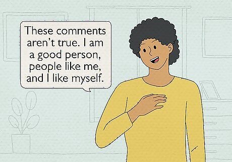 Use positive self-talk with yourself. It can be easy to start believing what the mean comments say and to start using negative self-talk like, “I AM stupid” or “I must be ugly”. Protect your self-esteem and your feelings by using positive self-talk to protect your feelings. Any time you notice that you have thought something negative about yourself, immediately tell yourself the thought wasn’t true and remind yourself how great you are. For example, you might say to yourself, “These comments aren’t true. I am a good person, people like me, and I like myself.”