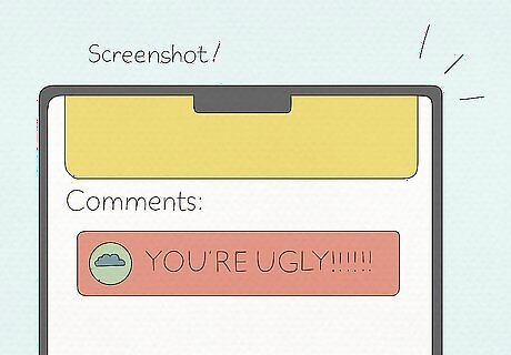 Document the comment. Sometimes comments cross the line between mean and bullying. If the comments get sexually graphic, violent, threatening, humiliating or if the same person (or people) posts lots of mean comments about you, then it is cyberbullying. You should save some form of evidence of it so that you can report it. If the comment references race/ethnicity, gender, sexual orientation, religion, or disabilities it can be considered discrimination. People often go back and delete mean comments they post on social media, so document the comment as soon as you see it. Take a screenshot of the comment. Try to make sure you get the time, date, and sender’s name in the shot. Keep a journal documenting where the comment was posted, what exactly it said or showed, who sent it, etc.