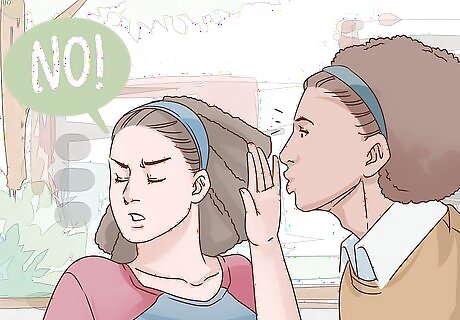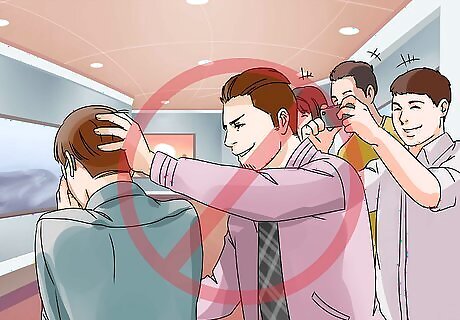 Intervene by using your voice. Whether you are an adult or a child, you can speak up against bullying and help protect a person who is being bullied. Most bullies maintain their power by isolating their victims, so when you gather with others to speak out against mistreatment, the person’s power is diminished. If you are a teacher or employer, you might say, “ Mr. Beach, we don’t discriminate here. Please stop calling Mr. Bernstein out because of his name. If I see this happen again, I will be forced to write you up.” If you are an adolescent, you might say, “She’s not doing anything to hurt you, so leave her alone. It’s not even funny. You wouldn’t like it if someone picked on you because you were different.”