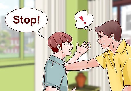 Confront the bully, if you feel comfortable. Sometimes, the best way to stop a bully is to stand up for yourself. Be direct and tell the bully exactly what bothers you about their behavior. Tell the bully if the behavior continues, you will report them. Avoid becoming emotional, as the bully may use this against you. Pull your shoulders back, lift your chin, and say something like, “I will not accept name-calling from you. Please stop.” Only speak out against a bully if you feel safe to do so. It may be best to allow an adult or someone in authority to handle a bully rather than placing yourself in danger.