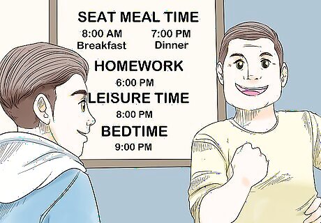 Provide structure in daily life. Create clear guidelines for how things work in your household and require that everyone stick to the plan. Come up with set meal times, times for homework, leisure time, and bedtimes for all your children. If your teen is struggling in school, you might decide that they need less screen time and more time for studying—at least until their grades improve. Though they may rebel against it, teens need (and actually want) structure in their lives.