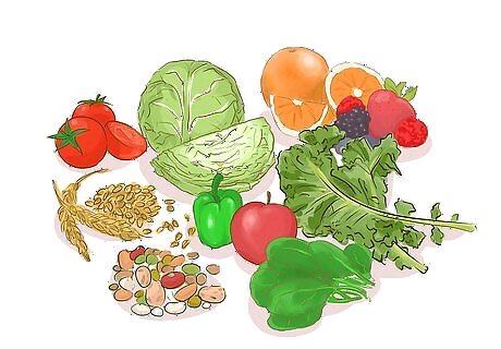 Follow a healthy, plant-based diet. Getting most of your nutrients from plants is a great way to improve your overall health and reduce your risk of breast cancer. Instead of eating mostly meat and other animal products, adjust your diet so you are mostly consuming fruits, vegetables, whole grains, legumes, nuts, and seeds. Incorporate healthy fats like olive oil and avocado in moderation as well. Avoid or limit your intake of meat, such as beef, pork, and chicken, dairy products like milk, cheese, and butter, and eggs.