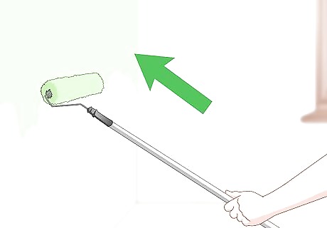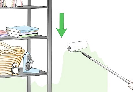 Paint the back wall a simple color if your shelves are busy. Open shelves are a focal point in a room, so you don't want the wall behind it to stand out. A neutral shade like white often works well. You can also use light colors such as a pale blue or wood paneling. Avoid dark, drab colors, since these contrast against most decorations.