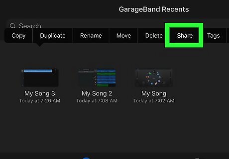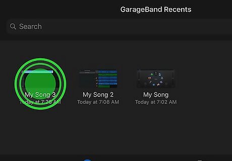 Open the GarageBand app from the homescreen, and wait for it to load. If GarageBand opens to a song, select My Songs from the top left corner to enter a menu with all of your saved recordings.