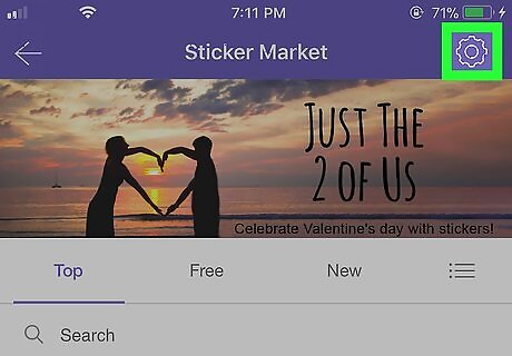 Tap the gear icon. It's at the top-right corner of the Sticker Market. All of the stickers you've collected appear under “My Stickers.”