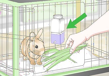 Give your rabbit food and water. Your rabbit will probably be able to eat the same day as the surgery. Offer some of its favorite greens and a bit of Timothy hay or Orchard hay. If your rabbit has not eaten within 24-48 hours of the surgery, contact your veterinarian.