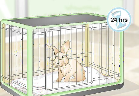Keep your rabbit in its cage for at least 24 hours. This will limit the rabbit’s mobility and prevent it from loosening the sutures due to activity. To reduce its stress and speed the healing process, place your rabbit’s cage somewhere warm and quiet. You can keep your bunny warm by filling water bottles with hot water and laying them in its cage, or by placing warm towels on the bottom of the cage.