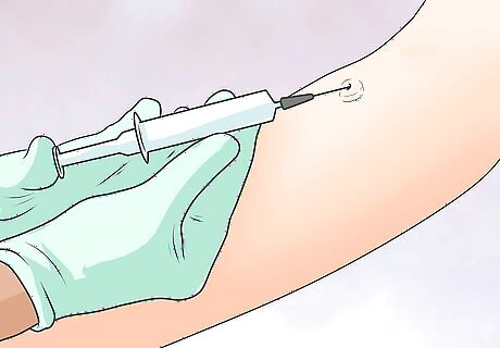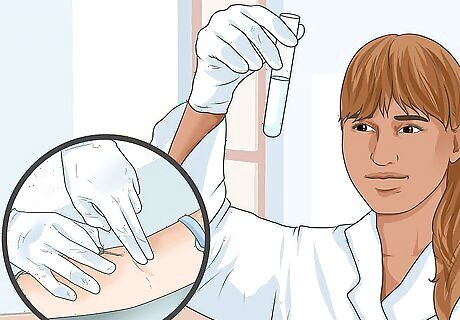 Get skin tests. The physician may recommend allergy testing. One kind of allergy testing may be done via skin tests. These tests can be done through a tiny prick or cut on the skin or by a very small injection just below the skin surface. A specialty physician called an allergist will most often conduct these tests for you. Positive results are indicated by a wheal and flare reaction, which is a raised, red, itchy bump surrounded by a circular area of swelling and redness in the test area. Most of the allergy tests are minimally painful, though the positive results will be itchy and swollen. The risk of anaphylaxis, or a severe allergic reaction, is a risk during allergy testing. Your allergist or physician will be specially trained to manage this reaction, if it occurs.