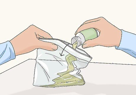 Pour the medication into a resealable plastic bag. Hold a resealable plastic bag over a countertop or sink so you don’t spill the medication anywhere. Open the medication bottle and slowly pour the contents into the bag. Empty the entire container into the bag and shake out as much from the bottle as you can. Once you empty the medication, you can throw the bottle away in your trash. Never leave the medication in its original packaging since it will be easier for people to find or steal from your trash. Do not recycle the medication bottle when you’re finished since it had contaminants in it.