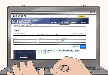 Go to a sponsored drug take-back event to get rid of medication safely. Many large cities offer drug take-back events through the Department of Health or Drug Enforcement Agency (DEA) so you can anonymously get rid of unwanted or expired medication. Check with your city’s website to see when take-back events occur in your area. Keep the medication in a hard-to-reach area until the event so pets or kids are unable to access it. There are usually 2 take-back events annually, but there may be more depending on your location. You can dispose of expired or unused prescription or over-the-counter medication at a take-back event. Smaller cities may not have sponsored take-back events. If not, look for another drop-off location in your area.