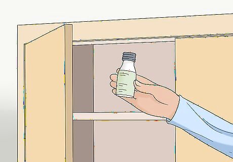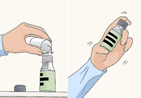 Add water to the medication if it thickened. Some thicker liquid medication may dry up or solidify in the bottle if it’s left for a long time. Fill a quarter of the bottle with water from your sink before putting the cap back on. Shake the bottle vigorously to help break apart the dried-out liquid so you can easily pour it out of the bottle.Tip:If the medication still doesn’t come out or liquefy, try breaking it apart with a spoon, fork, or stir stick.
