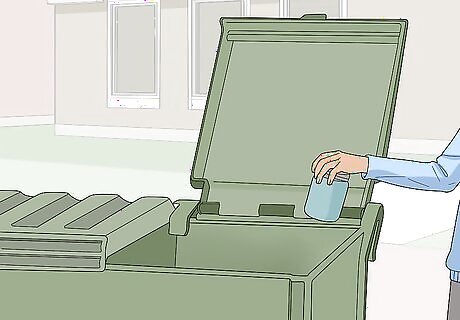 Take the container out with your regular trash. Set the container inside of your trash bin and tie the back closed so no one can easily access the contents. Put the trash in an outdoor trash bin or dumpster on waste collection day so your medication is thrown away without the risk of someone getting into it.