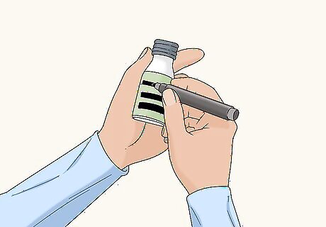 Cross off any personal information from the prescription label. Use a black permanent marker to cross off your name, address, and prescriber’s name on the label. Go over the area multiple times until you aren’t able to see or read any of the information on the label. Cover the name of the prescription as well so people don’t know what it is, which will deter them from trying to steal it from the trash. You can try to rip the label off of the bottle, but it may still leave scraps or residue on the bottle. You don’t need to cross off any information on over-the-counter medication.