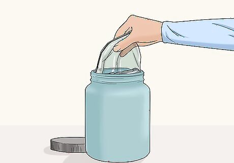 Place the bag in an opaque container so it’s not visible. Choose a small box or plastic container with a lid that you can easily fit the bag into. Make sure the bag stays sealed or else the container could easily leak the contents. Put the lid on the container or close the box before taping it shut so it’s harder to get into. Avoid using a food container since it’s more likely someone going through your trash will get into your medicine.
