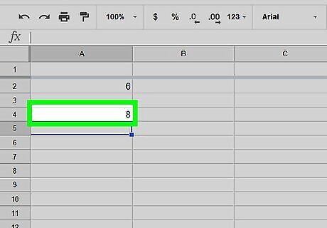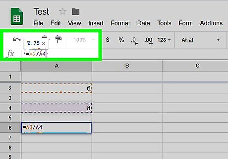 Enter your numerator value into the empty cell. The numerator is the number at the top of a fraction. You don't have to enter an integer for your numerator or denominator. Feel free to use decimal values here.
