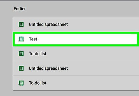 Click a spreadsheet file. Find the file you want to edit on the list of your saved spreadsheets, and open it.