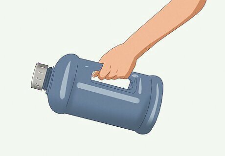 Use alternative equipment at home. If you can’t make it to a gym, you can easily recreate this lift in the comfort of your home using items you already own. If you don’t own a dumbbell, create your own. Fill a 1-liter bottle with water, lentils, or pebbles. For a heavier substitute, fill a 1-gallon jug with the substance of your choice (make sure the jug has a handle). Fill a handled grocery bag with items. Instead of a workout bench, use a bed, couch, or table to support yourself.