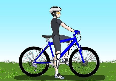Get ready. There's a good chance you'll get launched over your bars a couple times, so strap on your helmet, gloves, and pads. If you are rocking clipless pedals, switch to flats to make ejects easier. Find a big grassy area with no obstacles to practice in.
